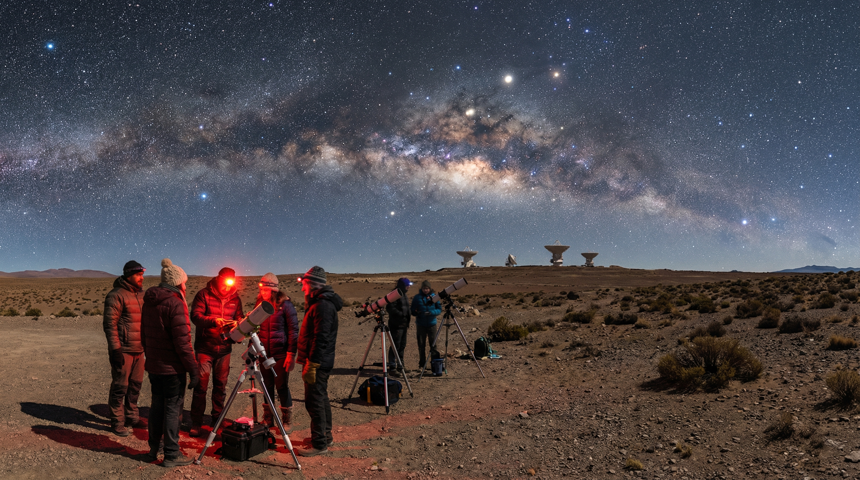 De temperatuur moet je niet onderschatten: nachten in de Atacama zijn koud door de ijle, droge lucht en op grote hoogte kan het flink vriezen. Warme, winddichte lagen, een muts en handschoenen maken het stargazing-comfortabeler en beschermt tegen de kou tijdens langere observatiesessies. Neem verder een stevig statief, extra batterijen en een zaklamp met rood licht mee om je apparatuur te bedienen zonder je nachtzicht te verliezen; zo haal je het meeste uit die onvergetelijke, kraakheldere nachten.