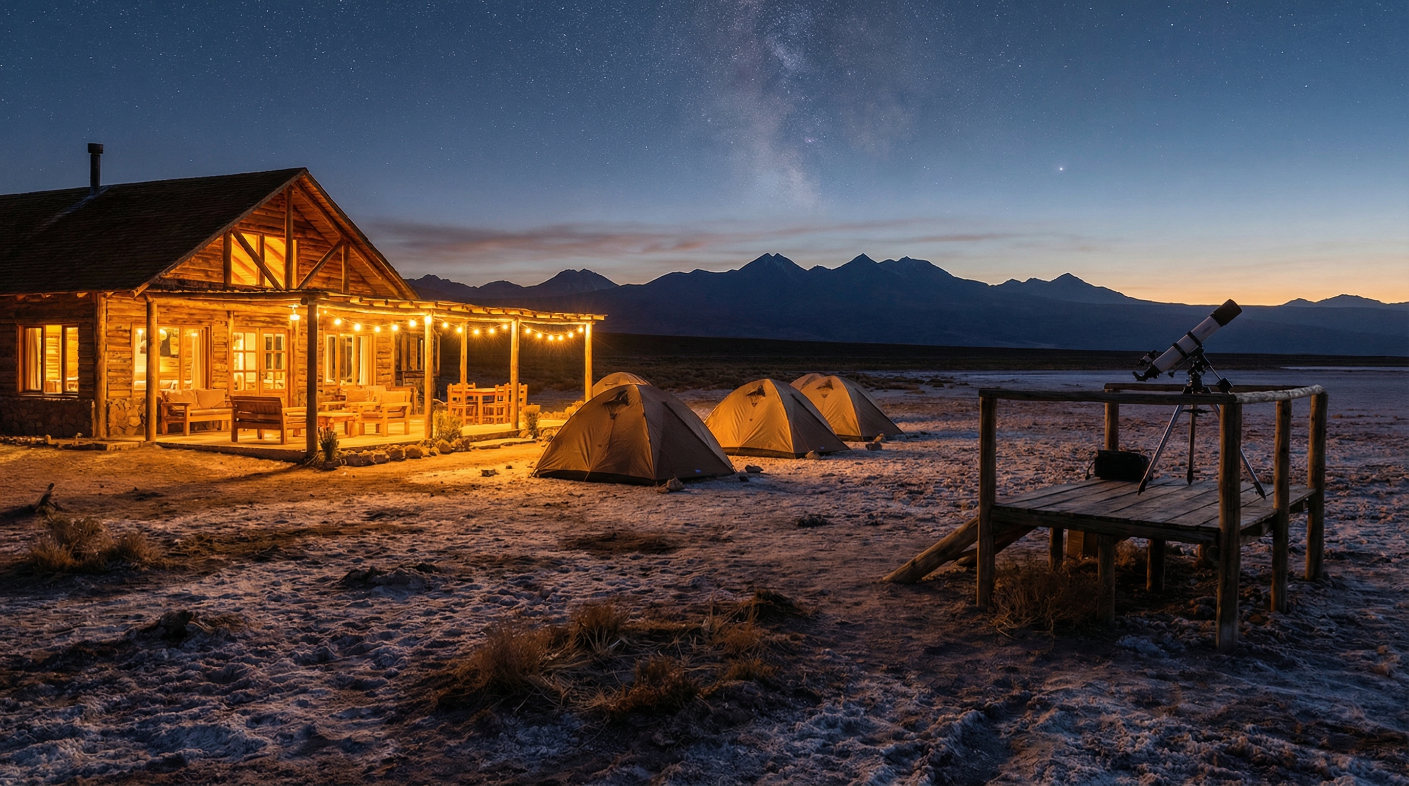 In de Atacama vind je uiteenlopende verblijfsmogelijkheden, van betaalbare hostels en kleinschalige lodges tot gespecialiseerde sterrenparken en eenvoudige campings. Hostels in San Pedro de Atacama zijn ideaal voor budgetreizigers en sociale contacten, terwijl boutique lodges comfort en lokale karakteristieken bieden, vaak met eigen warme douches en ontbijt. Sterrenparken en enkele lodges profileren zich op astrofotografie en bieden donkere locatielocaties of observatieplatforms; campings geven de meest directe natuurbeleving, maar vragen voorbereiding op koude nachten.