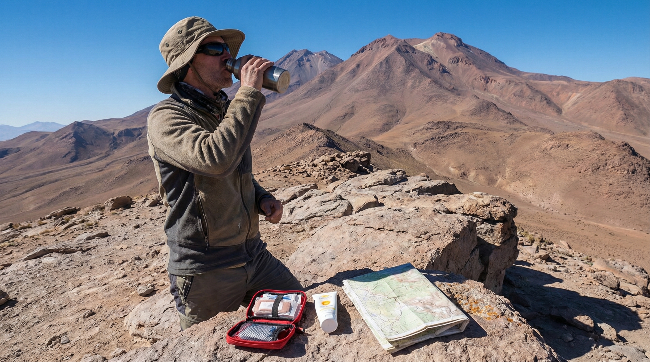 De Atacama vraagt om aandacht voor basale gezondheidsrisico’s door de combinatie van grote hoogte, intense zon en grote temperatuurverschillen tussen dag en nacht. Hoogteziekte kan optreden bij snelle stijging naar gebieden zoals El Tatio op circa 4.300 meter; signalen zijn zware hoofdpijn, misselijkheid, duizeligheid en ernstige vermoeidheid. Bouw je aankomst rustig op, rust de eerste dag en beperk fysieke inspanning om je lichaam te laten wennen aan de ijle lucht. Raadpleeg bij eerdere problemen met hoogte of chronische aandoeningen vooraf een arts; soms wordt preventieve medicatie zoals acetazolamide aanbevolen, maar dat moet door een professional beoordeeld worden.