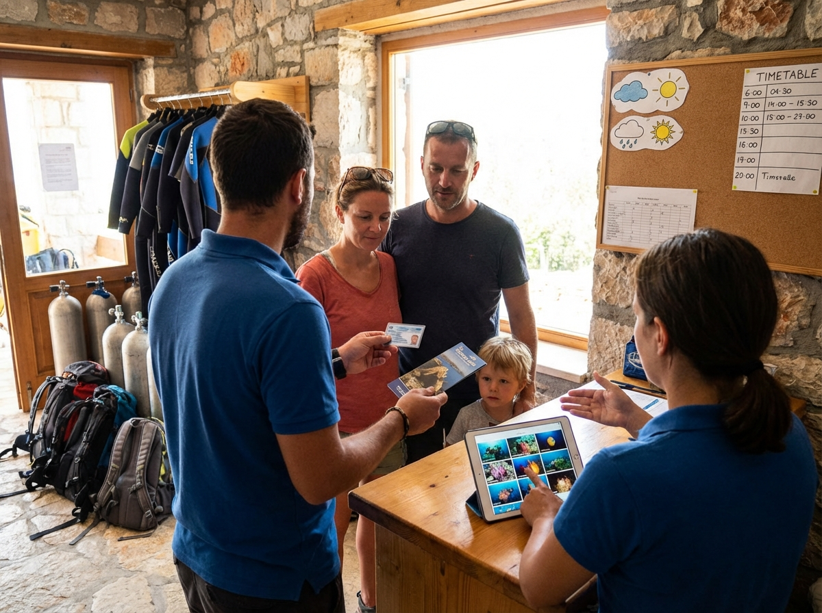 Voordat je boekt is het verstandig om gerichte vragen te stellen over de dagelijkse gang van zaken en veiligheid. Informeer naar de kwalificaties en ervaring van de instructeurs, de maximale groepsgrootte per gids, de staat en leeftijd van huurapparatuur, en welke noodvoorzieningen en communicatiemiddelen aanwezig zijn op boten. Vraag ook naar de cursusopzet, lesmateriaal en examenwijze als je een certificaat wilt halen, en naar de aanwezigheid van extra services zoals foto‑/videopakketten of transferopties vanaf je accommodatie.