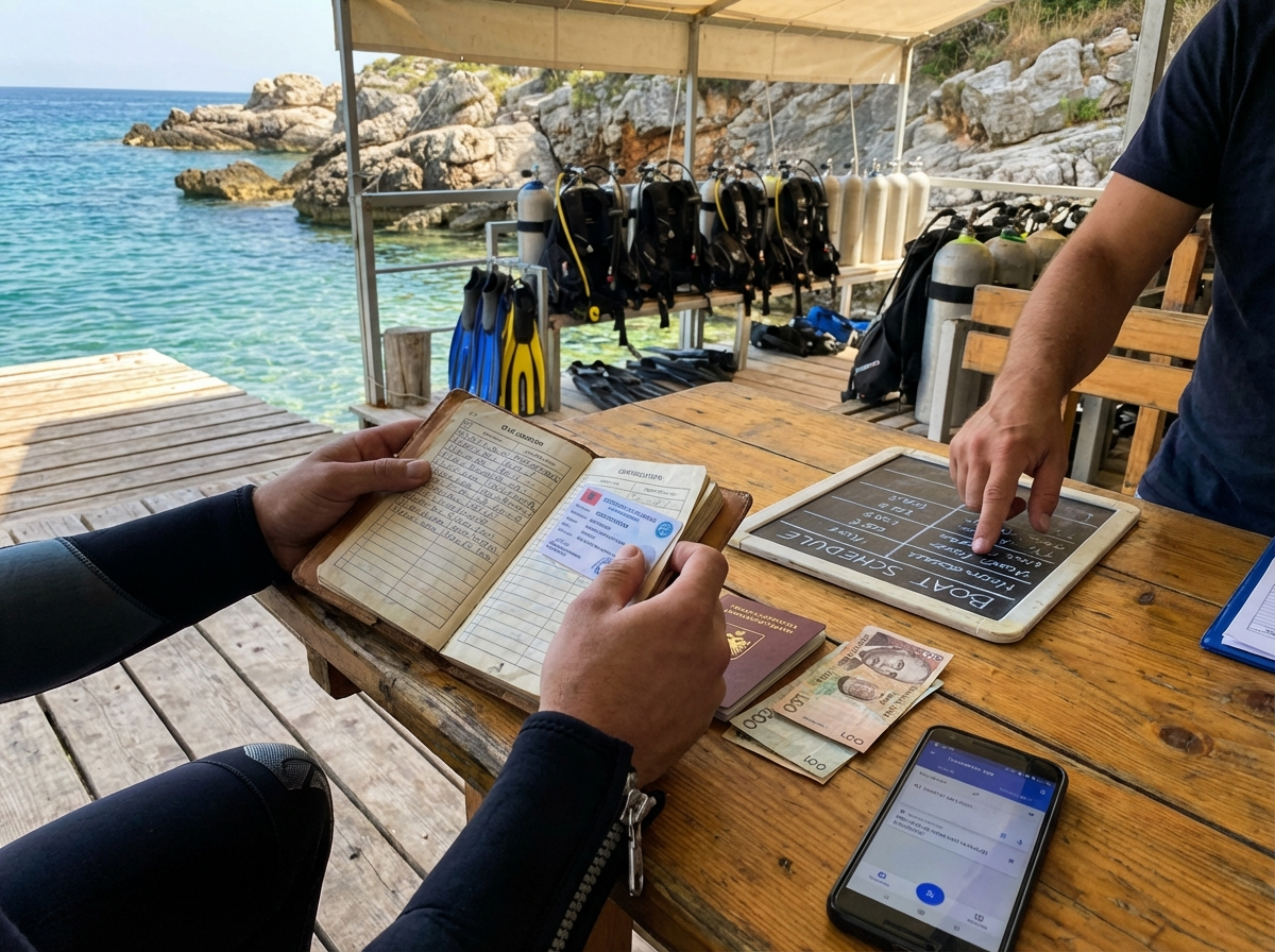 Houd er rekening mee dat prijzen in toeristische hotspots zoals Sarandë en Ksamil in het hoogseizoen hoger liggen dan in minder bezochte regio’s, en dat extra’s zoals brandstoftoeslagen, foto‑/videopakketten of havengelden vaak apart worden berekend. Het verstandige advies is om offertes van meerdere centra te vergelijken en goed te checken wat precies is inbegrepen: boottransfer, gids, verzekering, en eventuele extra kosten voor materiaal of certificering kunnen het verschil maken in de uiteindelijke prijs.