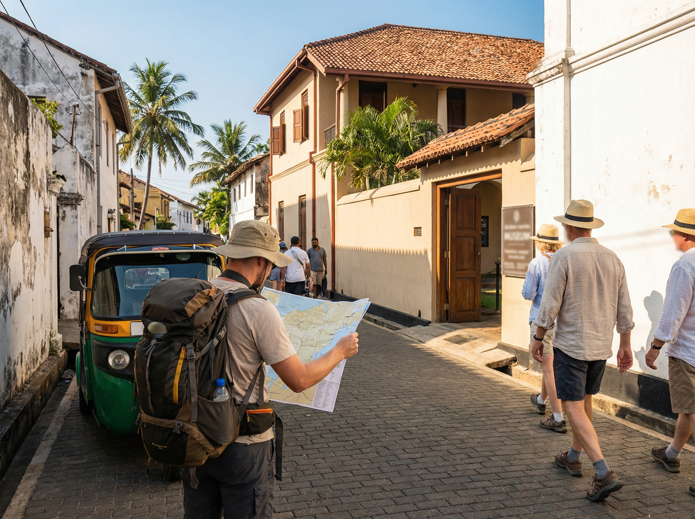 Voor wie dieper wil graven zijn er thematische wandelingen die zich op verschillende aspecten richten. Een architectuurroute leidt langs koloniale herenhuizen, veranda’s, houten luiken en kerkgebouwen en maakt de bouwkundige gelaagdheid zichtbaar; een museumpad concentreert zich op plekken als het Galle National Museum en kleine galerieën, met suggesties om zalen en exposities te combineren; een fotografie-route benadrukt lichtval, smalle steegjes en details zoals gevelornamenten en marktkramen, met aanbeveling om vroeg of laat op de dag te gaan voor het mooiste licht. Deze thematische routes laten zich goed afwisselen en inspelen op persoonlijke interesses.