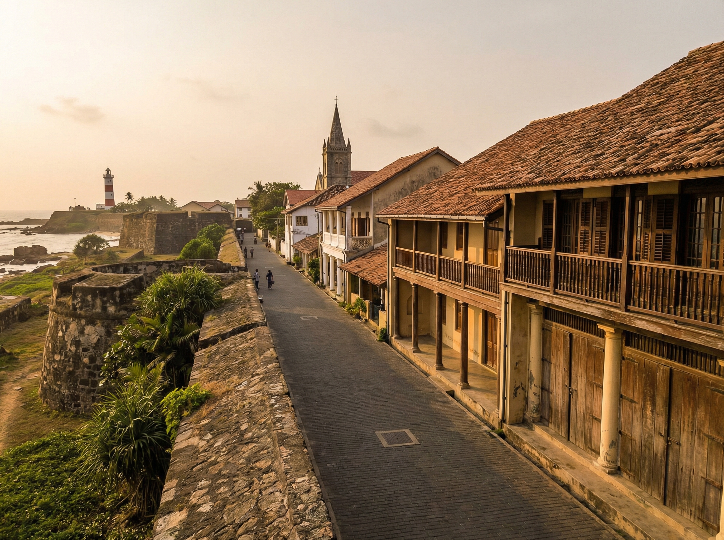 Galle Fort, aan Sri Lanka's zuidkust, is een levend archief van koloniale herinneringen: Portugese, Nederlandse en Britse invloeden versmelten in zeeweringen, bastions en geplaveide straten. De gebouwen, musea en wandelroutes tonen sporen van handel, macht en culturele uitwisseling, terwijl het fort vandaag balanceert tussen erfgoedzorg en het ritme van het dagelijkse leven.