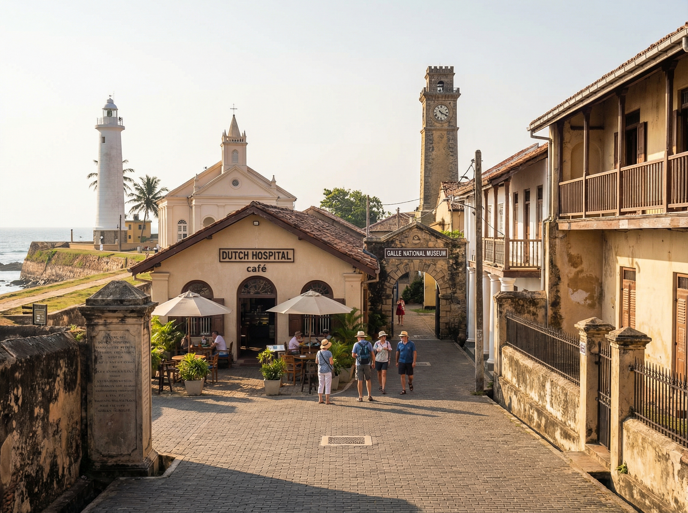 Voor een halfdagbezoek kun je rekenen op drie tot vier uur om de essentie van het fort te zien zonder te haasten. Begin bij de vuurtoren en maak eerst een rondje over de vestingwallen (ongeveer 45–60 minuten) om het overzicht te krijgen, wandel daarna naar de Dutch Reformed Church en loop door naar het Dutch Hospital, waar een korte pauze van 30–45 minuten ideaal is om te genieten van koffie en sfeer. Reken een uur voor een bezoek aan het Galle National Museum of een combinatie van een kleine galerie en winkeltjes; zo vormt zich een compact programma met zowel panoramische uitzichten als culturele diepgang.