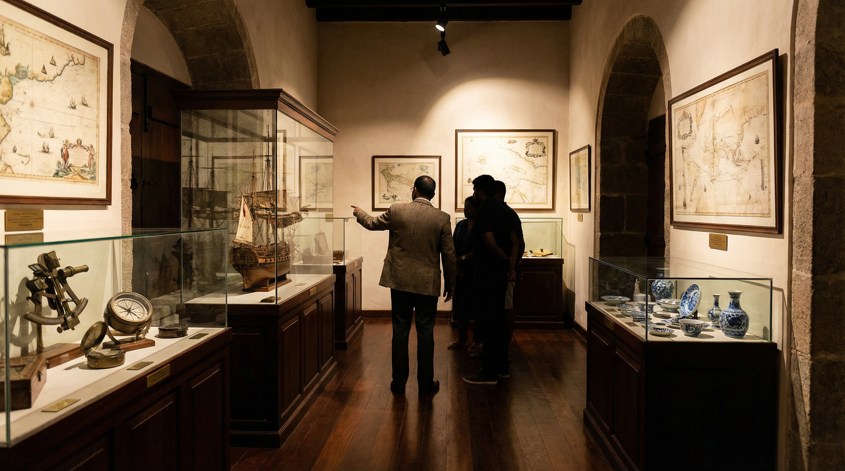 De museale collectie binnen en rond Galle Fort biedt een venster op de maritieme en koloniale geschiedenis van het gebied, met aandacht voor zowel grote thema's als materiaal cultuur. In vaste zalen domineren vaak maritieme kabinetten met scheepsmodellen, sextanten en kompassen die de navigatietechnieken van vroegere zeevaarders illustreren, naast kaarten en zeekaarten die handelsroutes en politieke belangen zichtbaar maken. Koloniale artefacten variëren van administratieve documenten en ambtsinsignes tot meubels en textiel, waarmee bezoekers directe verbanden kunnen leggen tussen bestuur, handel en dagelijks leven in verschillende periodes. Keramiek en serviezen, waaronder zowel Chinese exportporselein als lokale aardewerktypen, geven bovendien inzicht in consumptiepatronen en handelsnetwerken.