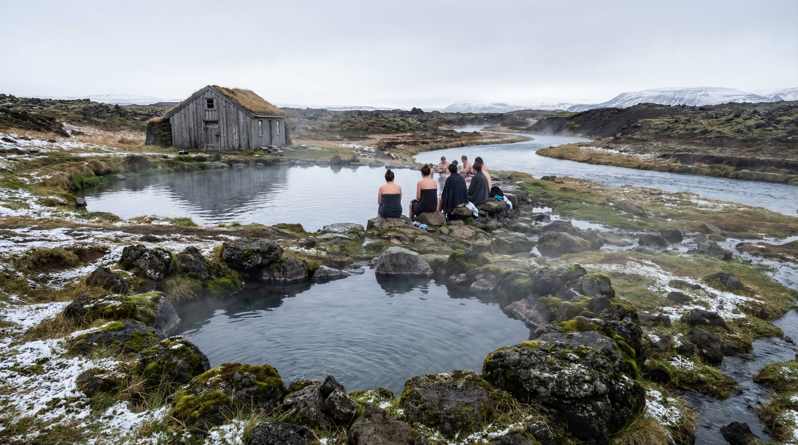 Stoom kringelt boven ruige vlaktes en groeven waarin geothermische warmte water bijeenhoudt; buiten de bekende Blue Lagoon schuilen talloze kleine hot pots, gedragen door natuur en lokale tradities. Deze baden zijn zowel ontspanning als sociale ruimte: gedragsregels en respect voor bewoners bepalen vaak de sfeer en het plezier van een bezoek.