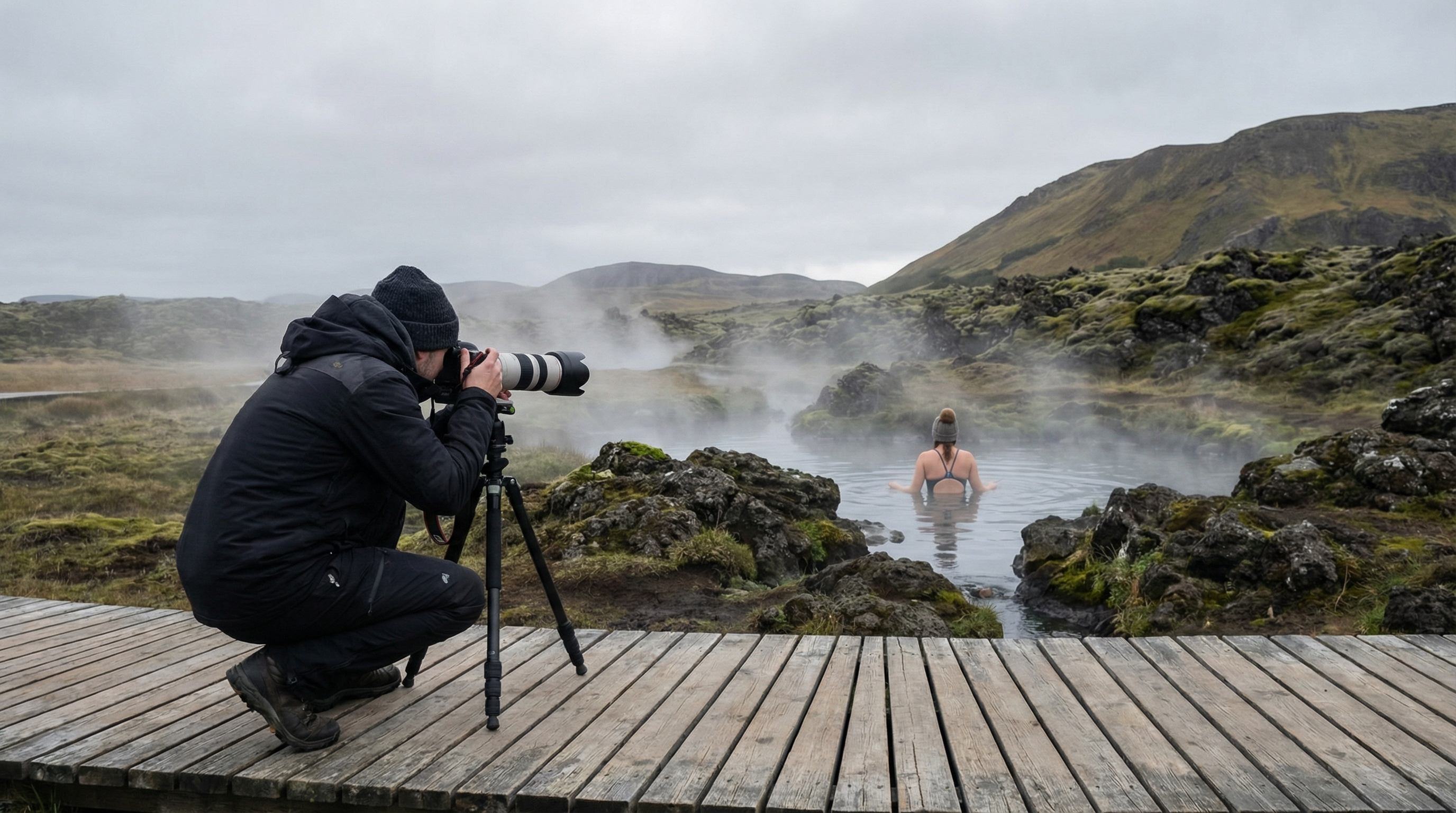 Fotograferen bij lokale hot pots vraagt meer voorzichtigheid dan op een gewone toeristische plek; deze locaties zijn vaak ook leefruimte voor bewoners en bieden mensen rust. Vraag altijd toestemming voordat je duidelijke portretten maakt of iemand nadrukkelijk in beeld brengt. Als je iemand vastlegt zonder expliciet akkoord, kies dan een compositie waarbij gezichten niet herkenbaar zijn, bijvoorbeeld foto’s van achteren, silhouetten of focus op handen en details in plaats van herkenbare gezichten.