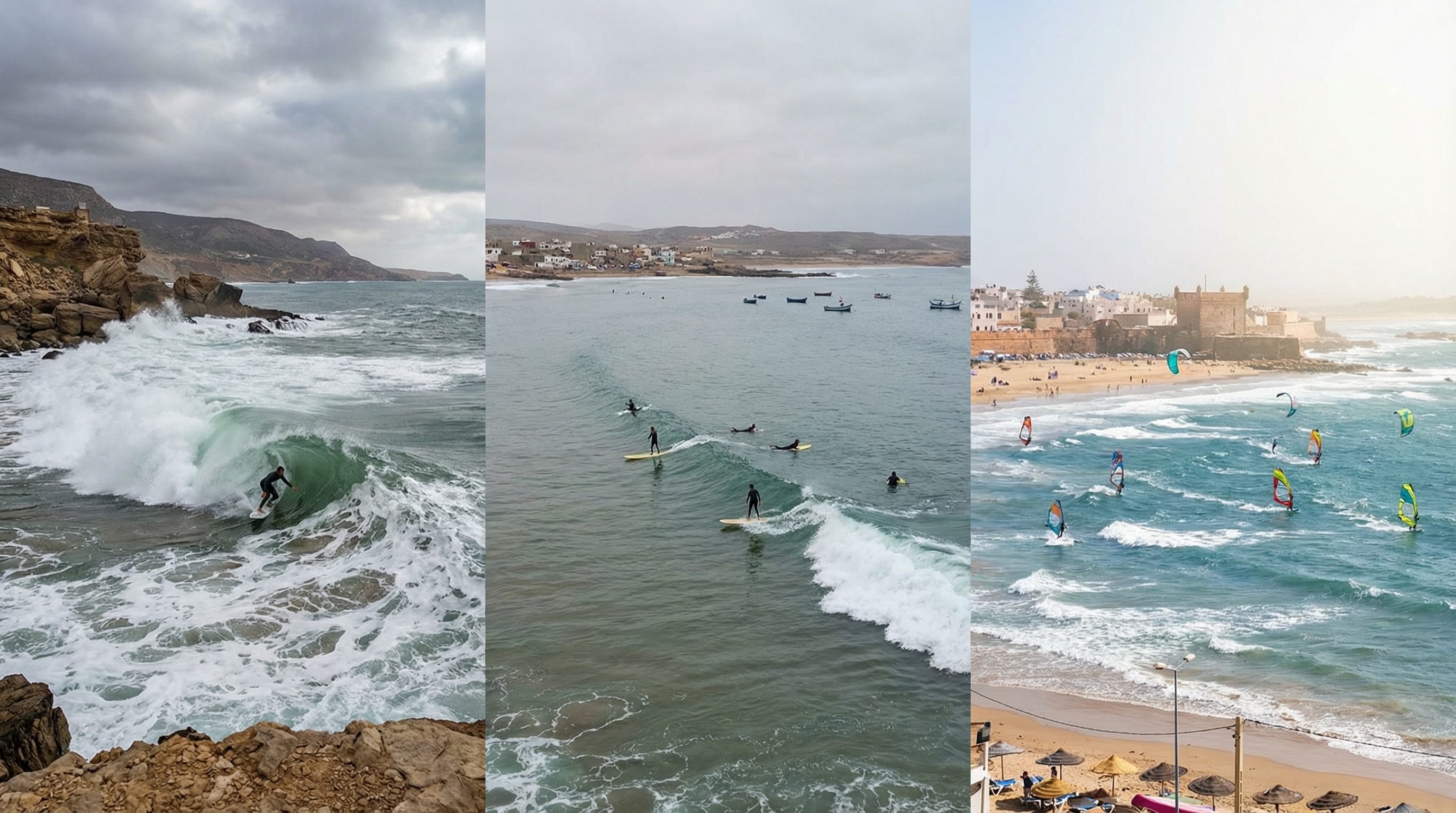 Ruwe Atlantische golven, kleurrijke vissershavens en een ontspannen surflevensstijl ontmoeten elkaar langs Marokko’s westkust. Van de relaxte vibe van Taghazout tot de windgedreven energie van Essaouira: hier heeft de zee de cultuur gevormd, lokale tradities beïnvloed en een internationale surfcommunity aangetrokken. Timing is cruciaal — seizoenen bepalen wanneer de beste sets rollen en stranden hun karakter tonen.
