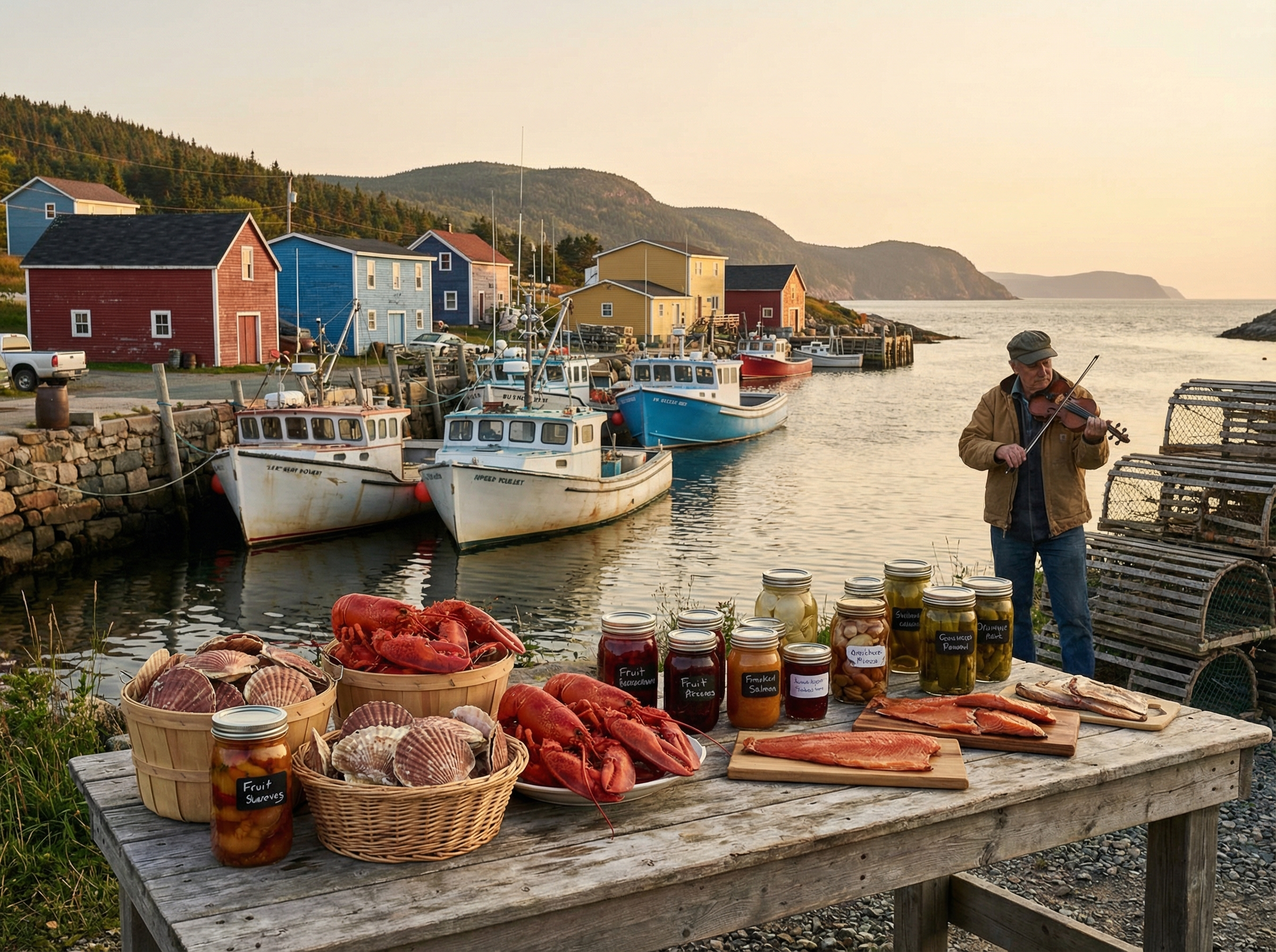 De maritieme cultuur van Atlantisch Canada is een levendig weefsel van Acadiërs en Keltische tradities, gevormd door generaties vissers, scheepsbouwers en migranten uit Europa. In dorpjes klinkt nog steeds de combinatie van Franstalige gezangen, snellopende vioolmelodieën en het ritme van percussieve dansen; die muzikale erfenis is zichtbaar op festivals, in lokale cafés en tijdens dorpsbijeenkomsten. Taal, verhalen en familierituelen blijven doorgegeven in gemeenschappen waar de zee het levensritme bepaalt en waar musea en lokale erfgoedcentra die geschiedenis bewaren en presenteren.