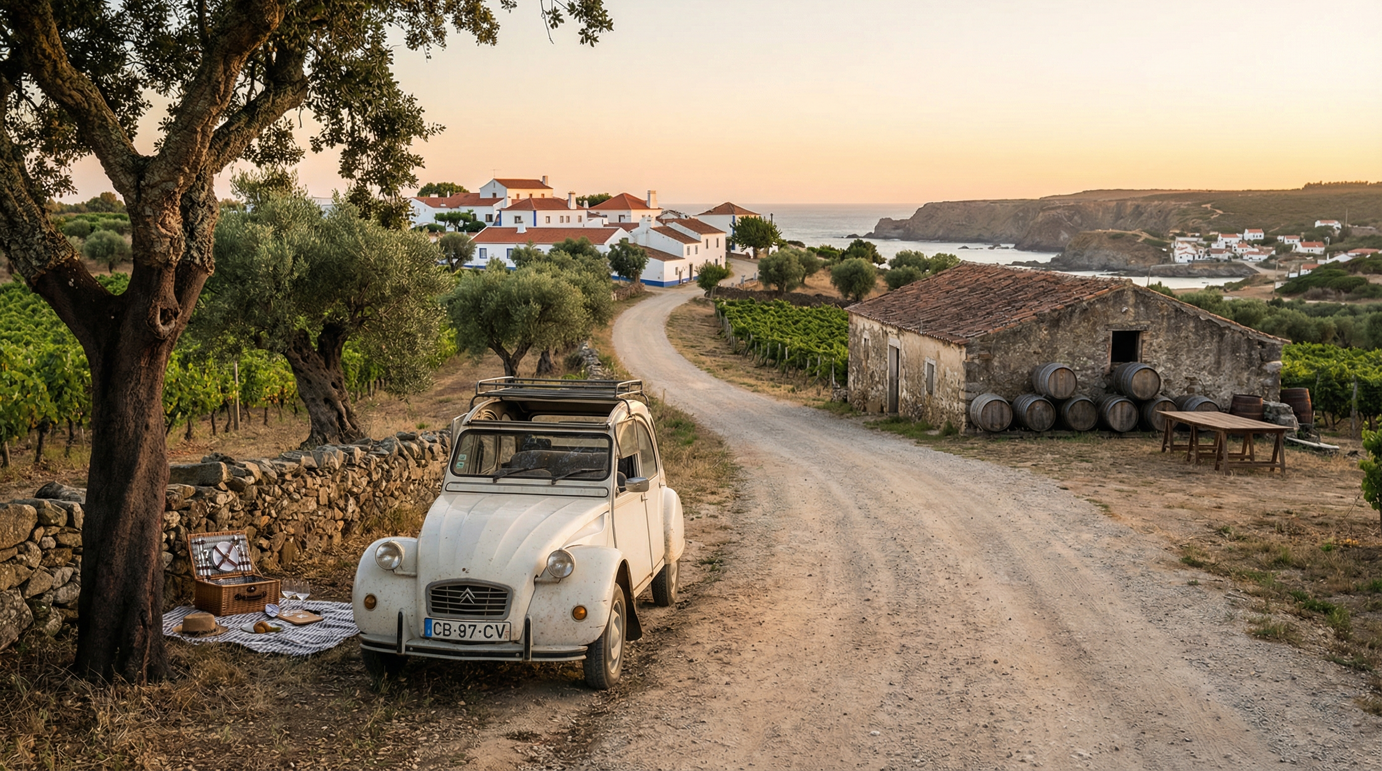 Voor een klassieke 7–10‑daagse route die ook de kust omvat, kun je starten in Évora en geleidelijk zuidwaarts rijden. De eerste dagen combineer je dorpen als Monsaraz en Estremoz met rustige tussenritten door wijngaarden. Na drie à vier dagen bereik je de zuidwestelijke kust; breng tijd door in Vila Nova de Milfontes en Zambujeira do Mar voor stranden, kliffen en seafood, met tussenstops bij kleine kustplaatjes en vuurtorens. In de dagen daarna kun je langs landelijke wegen terugkeren en dorpen als Odemira of Castro Verde bezoeken, afgewisseld met proeverijen en korte wandelingen, waarbij je ruimte laat voor ontspannen stranddagen of extra wijngaardbezoeken afhankelijk van een reisduur van zeven tot tien dagen.