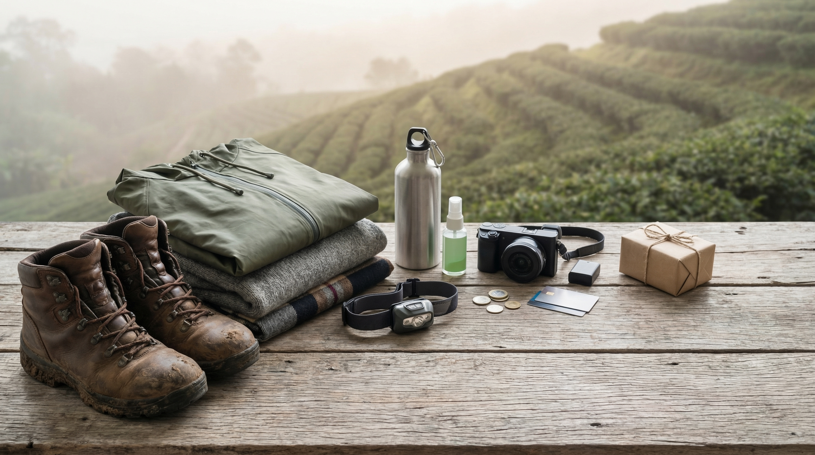 Voor een bezoek aan plantages is praktische kleding en uitrusting essentieel. Draag stevige schoenen met goede grip voor ongelijk en steil terrein, en neem regenkleding en lagen mee zodat je snel kunt inspelen op wisselend bergweer. Een kleine zaklamp of hoofdlamp is handig bij vroege rondleidingen of tochtjes rond verwerkingsterreinen, en een herbruikbare waterfles houdt je gehydrateerd tijdens wandelingen.