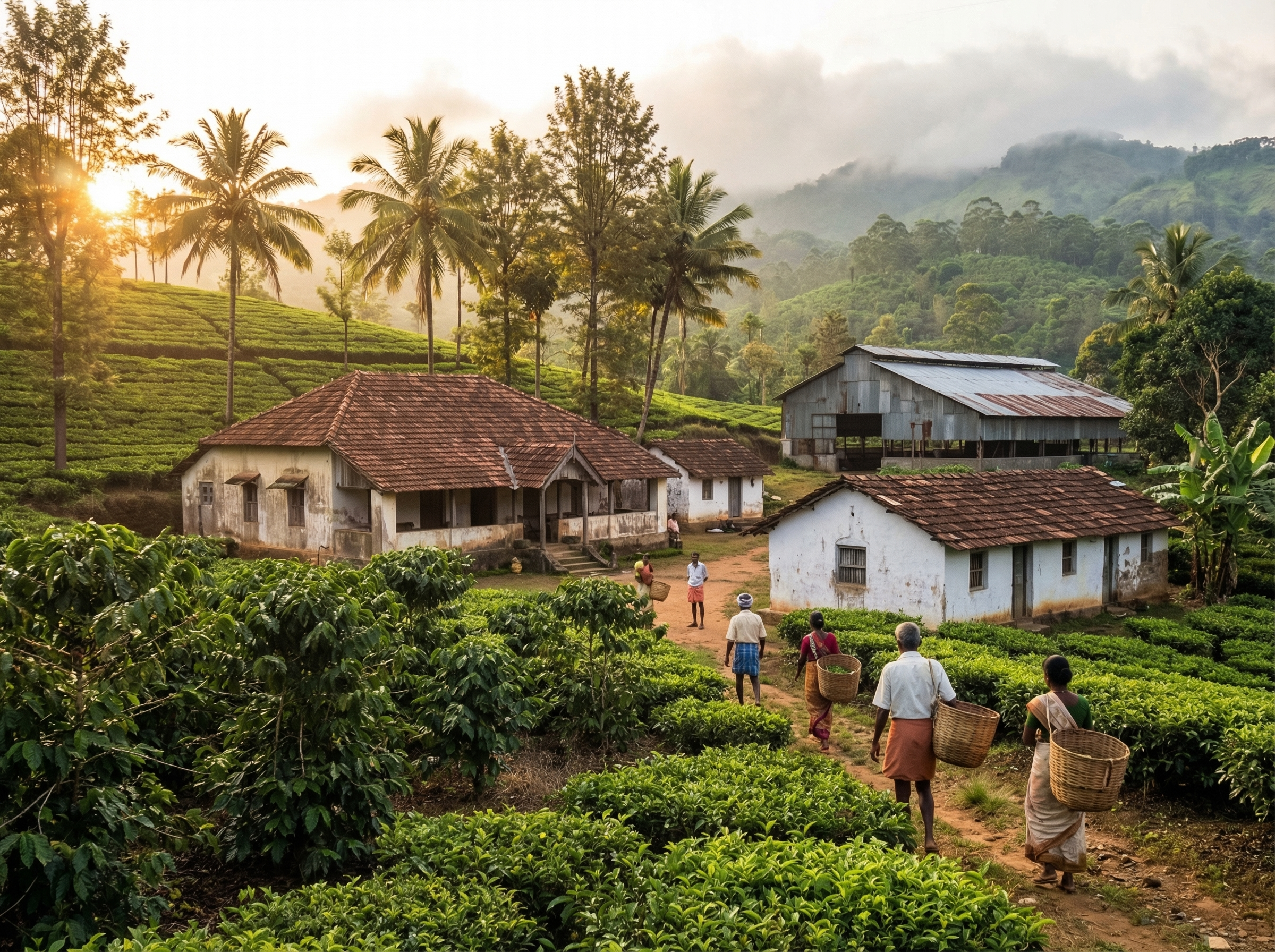 De introductie van koffie en later van thee in zuid-India is een verhaal van ontdekkingen, handel en veranderende landgebruiken. Volgens de overlevering bracht de reiziger Baba Budan in de 17e eeuw zeven koffiebonen terug uit Midden-Oosten en plantte die in de bergen van Chikmagalur; dat markeert het begin van lokale koffiecultuur die eeuwen later uitgroeide tot grootschalige teelt. Thee kreeg pas echt voet aan de grond in de 19e eeuw, toen Britse koloniale ondernemers geschikt hoogland begonnen te cultiveren voor commerciële plantages in gebieden als de Nilgiri Hills en Munnar.