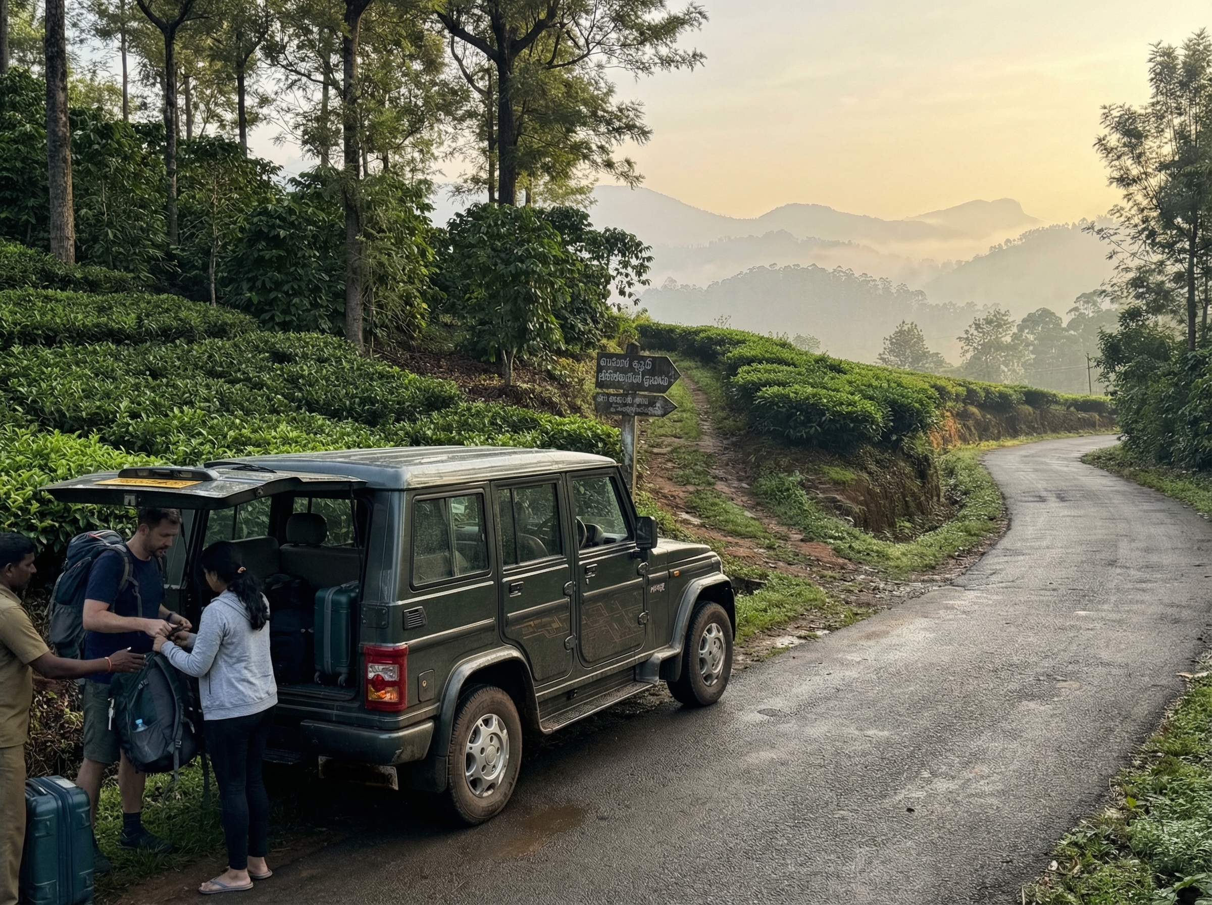 Hou bij het plannen van transfers rekening met seizoensinvloeden en wegcondities: regenachtig weer kan reistijden flink verlengen en sommige landelijke paden zijn in het moessonseizoen moeilijk begaanbaar. Boek transfers bij voorkeur vooraf en plan voldoende reistijd tussen aansluitingen; vermijd nachtelijke ritten in heuvelachtig terrein, controleer of voertuigen goede vering en banden hebben, en stem aankomsttijden af met de plantage als je aan een rondleiding of proeverij vastzit.