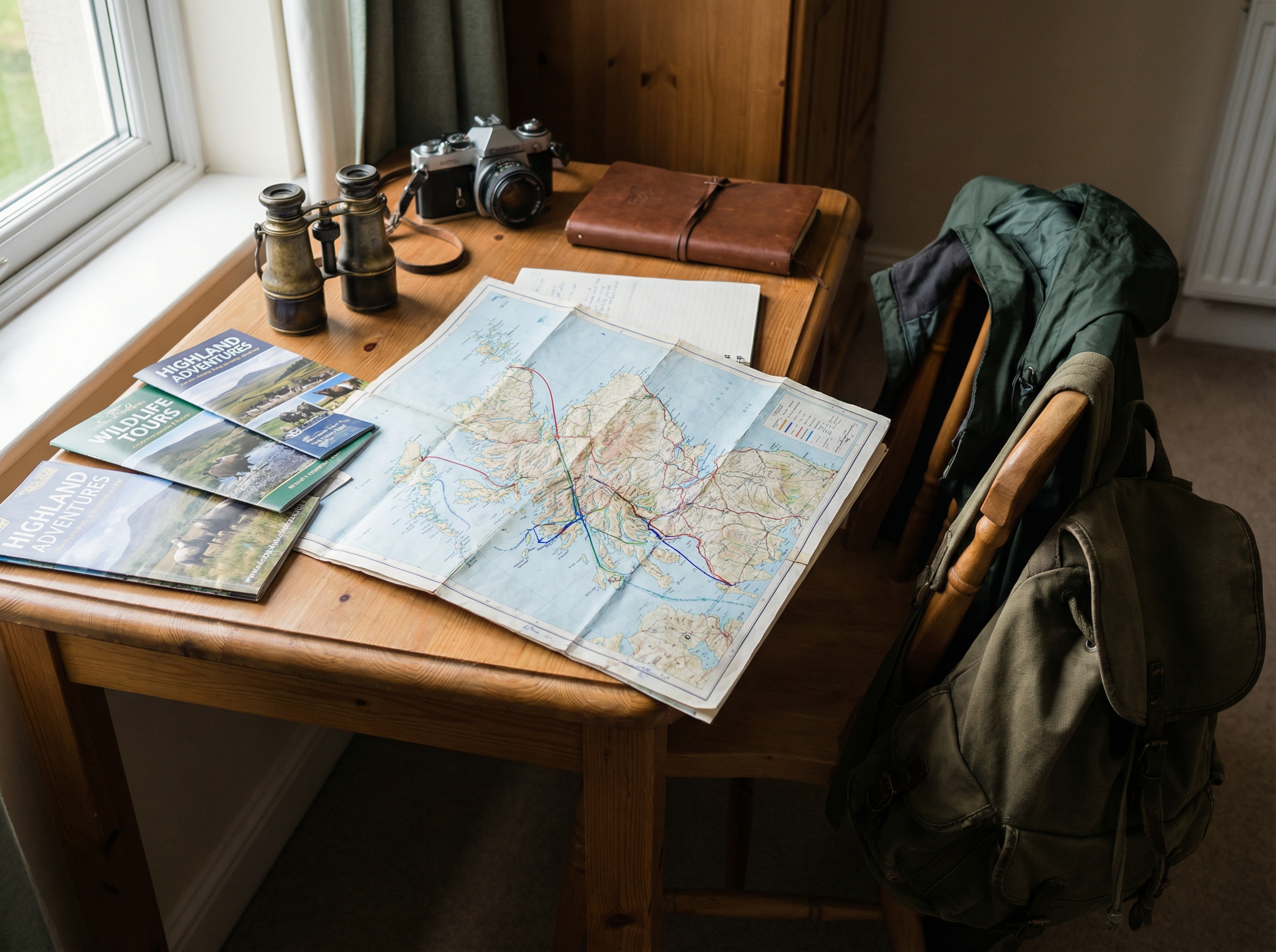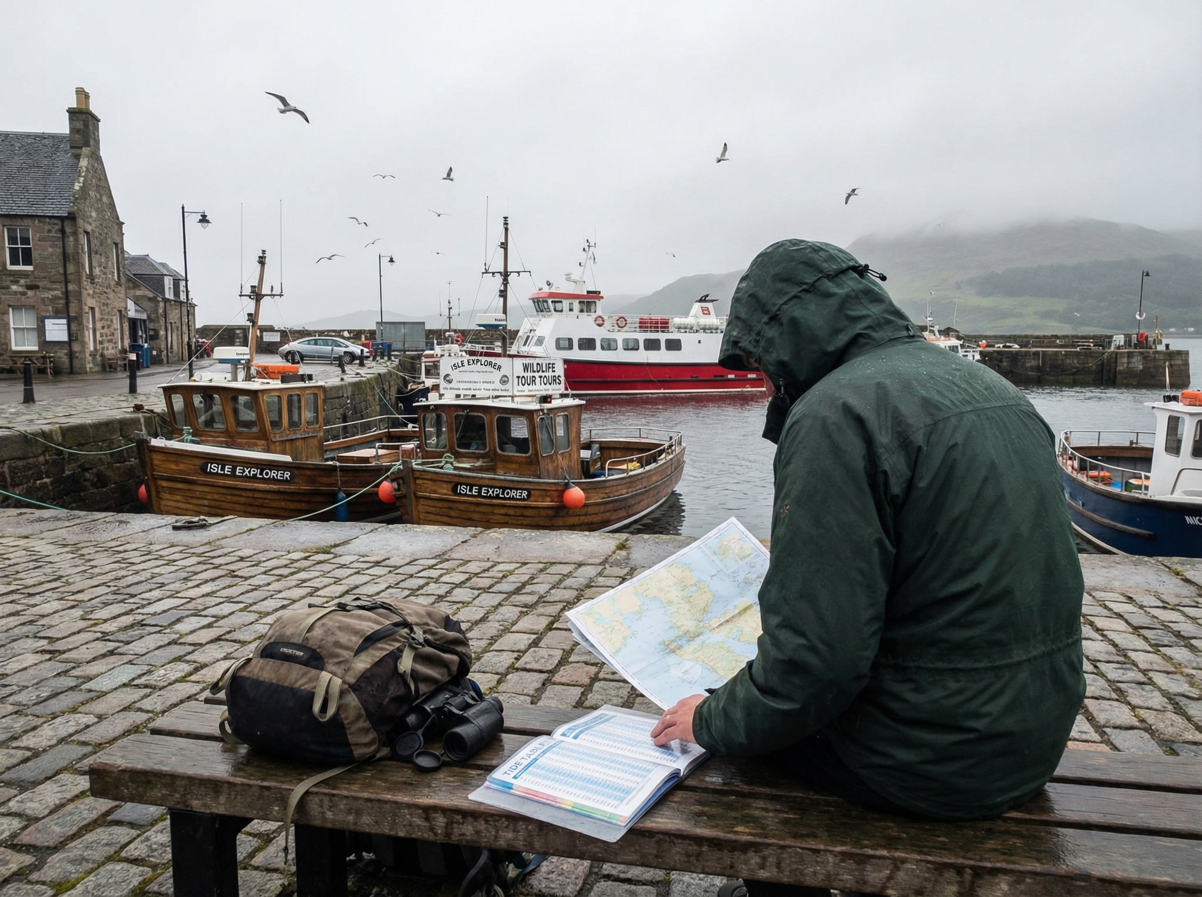 Houd altijd ruimte in je reisschema voor alternatieven: slechte weersomstandigheden kunnen tochten uitstellen of verplaatsen, dus een extra vrije dag in dezelfde regio vergroot de kans dat je alsnog op pad kunt. Controleer veer- en vliegschema’s tussen eilanden (bijvoorbeeld Caledonian MacBrayne-verbindingen) en reken ruim op reistijd bij overstappen, want vertragingen of uitval komen voor. Kies accommodatie bij voorkeur in de buurt van vertrekhavens om vroegtijdig aan boord te kunnen en om reistijd te minimaliseren.