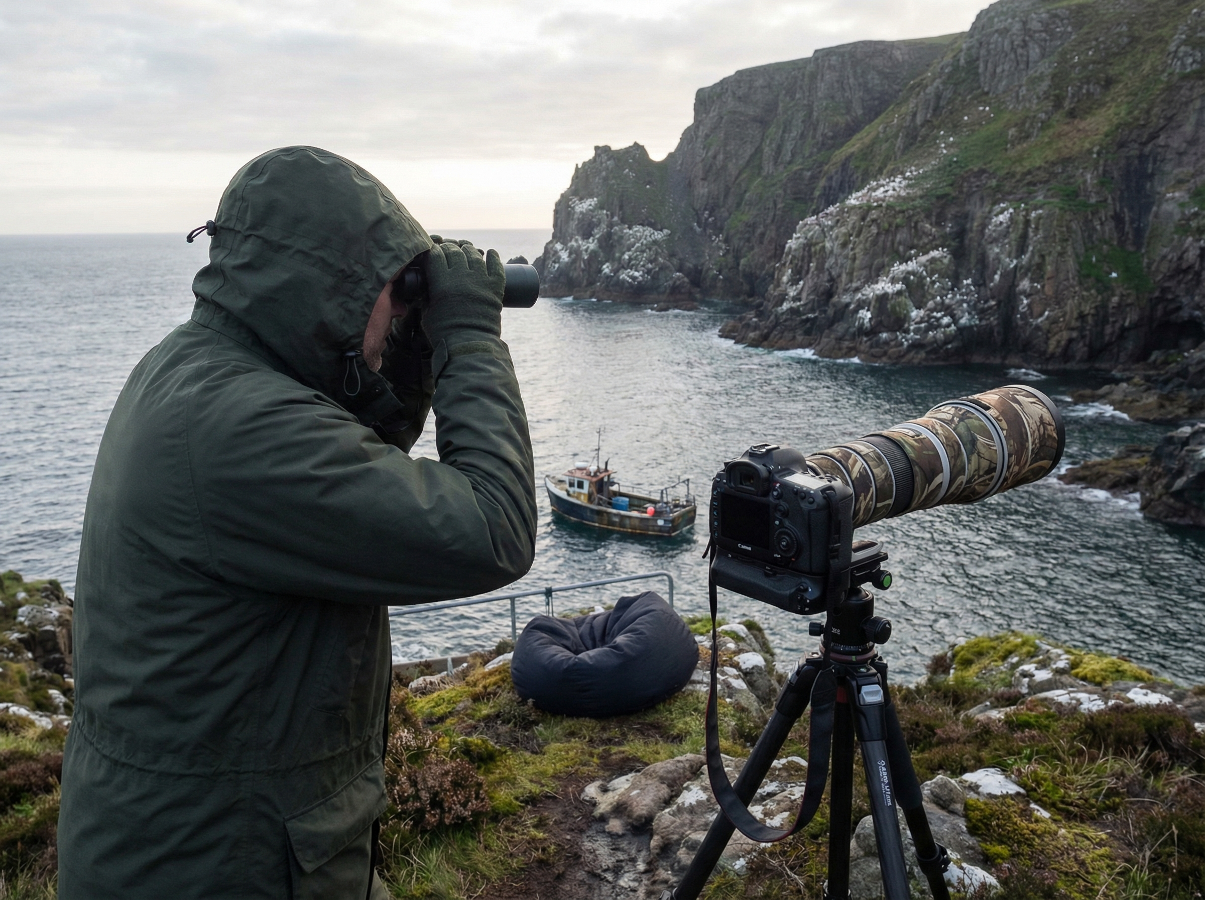 Voor een geslaagde wildlife-observatie is goede uitrusting essentieel. Een degelijke verrekijker (bij voorkeur 8x42 voor een stabiel beeld en voldoende lichtsterkte) en een camera met een telelens (minimaal 200–300 mm, bij voorkeur met beeldstabilisatie) verhogen je kansen aanzienlijk. Vergeet extra batterijen en lege geheugenkaarten niet; koude en vochtige omstandigheden verminderen accutijd. Waterdichte, winddichte kleding en stevige schoenen houden je comfortabel tijdens lange wachtmomenten langs natte kusten of op wiebelige bootdekken. Een kleine zitkussen, handschoenen en een hoed kunnen het verschil maken op winderige uitzichtpunten.