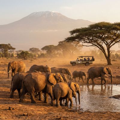 - Middag: Na inchecken bij je lodge ontstaat meteen de keuze voor actie of chill: spring direct in een begeleide middag-game-drive door Amboseli National Park met zicht op Mount Kilimanjaro, of kies voor een relaxte lunch bij het zwembad gevolgd door een korte natuurwandeling met gids. Als je het liever goed geregeld hebt kun je een Amboseli National Park Safari with Mount Kilimanjaro Views boeken voor vervoer en extra uitleg, of je blijft bij het kamp foto’s maken vanaf het observatiedek en nipt aan koffie terwijl de olifanten voorbij trekken.