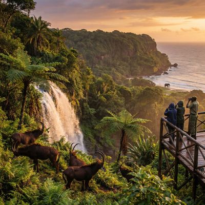 - Ochtend: Sta vroeg op en rijd vanuit Diani Beach naar het groene binnenland waar je het unieke bos en de kliffen van Shimba Hills National Reserve bezoekt; kies voor een stevige, begeleide hike naar de waterval om vogels, apen en plantendiversiteit van dichtbij te zien, of neem de 4x4 voor korte game-stops om de zeldzame sable-antilope en de kustolifanten te spotten terwijl de gids sporen en verhalen deelt. Liever iets rustigers? Blijf in de buurt van je lodge en maak een korte ochtendwandeling over de rand van de heuvels voor weidse uitzichten en fotostops.