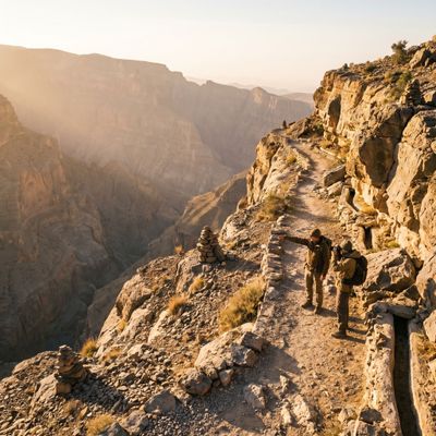 Dag zeven brengt je dieper in het ruige hart van Oman: een dag vol dramatische kloven, eeuwenoude dorpen en hoge bergranden. Je verlaat de kustregio en kunt kiezen voor een pittige, fotogenieke stop bij Wadi Bani Awf of een meer ontspannen route met groene micro-oases zoals Wadi Tiwi. Het doel is het charmante Al Hamra en het nabijgelegen Misfat Al Abriyeen, waar stenen huizen en irrigatiekanalen je meenemen naar een oudere levensstijl. Lokale gidsen en georganiseerde opties zoals een Misfat Al Abriyeen guided walk geven context en toegang tot verborgen plekken, terwijl het rijden naar Jebel Shams je voorbereidt op indrukwekkende uitzichten en wandelingen. Aan het eind van de dag kies je tussen de Balcony Walk bij zonsondergang of het gemak van een lodge met diner en sterrenhemel; wie het avontuurlijke pad kiest kan zelfs onder begeleiding overnachten en vroeg de canyon verkennen. Deze dag is ideaal voor reizigers die cultuur, natuur en een voorproefje van Oman's hoogste landschappen willen combineren.