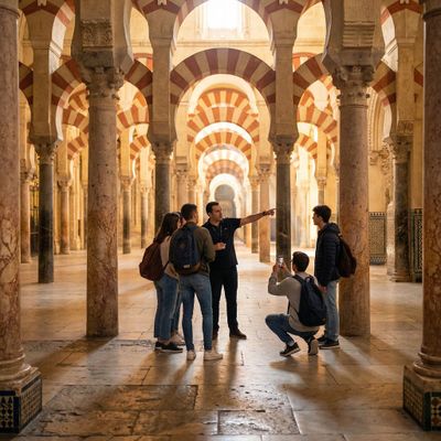 - Ochtend: Vroege AVE of regionale trein naar Córdoba, drop je koffer in het hotel en begin met koffie op een zonnig terrasje. Je kunt meteen richting de iconische Mezquita-Catedral de Córdoba lopen om vroeg in de rij te staan en de lichtval door de zuilen te vangen, of kiezen voor een georganiseerde transfer of begeleide rit via Córdoba day trip from Seville als je het reizen zonder stress wilt. Als je de voorkeur geeft aan iets actiever, huur dan een fiets om over de eeuwenoude Roman Bridge te cruisen en de rivierkant te verkennen voordat de hitte toeneemt.