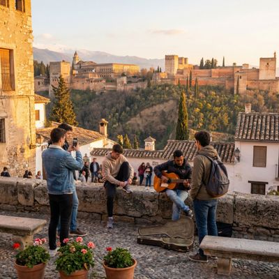 - Avond: Ga op zoek naar het beroemde zonsondergangzicht bij het Mirador de San Nicolas en laat de Alhambra gloeien in het avondlicht, of blijf in de wijk Sacromonte waar je een meer rauwe en intieme flamenco-ervaring kunt meemaken; een boeking voor een Sacromonte cave flamenco show levert gegarandeerd kippenvel op. Voor wie nog wil doorfeesten zijn de smalle straatjes rond Calle Elvira gevuld met bars en jonge locals, terwijl reizigers die rustig willen eindigen kiezen voor een rooftop met uitzicht en een glas lokale wijn.