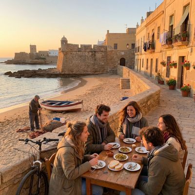 - Middag: Kies voor een korte treinrit naar Jerez de la Frontera en duik in de wereld van sherry met proeverijen in traditionele bodega’s of een rondleiding door de sherry cellars via Jerez sherry tasting tour, of blijf in Cádiz en huur een fiets om langs het strand en de boulevard te cruisen en de forten vanaf andere perspectieven te fotograferen. Voor wie actie wil: ga kajakken langs de kustlijn of zoek een lokale boottocht om dolfijnen te spotten; voor slow travel-liefhebbers is een langzame lunch met verse zeevruchten op Plaza de Mina perfect.