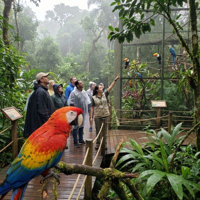 - Ochtend: Sta vroeg op en kies je richting: steek de grens over naar de Braziliaanse kant voor brede panorama's van Iguazú Falls en wandel langs het hoofdplatform waar je de watervallen in één blik kunt opnemen, of blijf aan de Argentijnse kant en herhaal favoriete loopbruggen om nog dichter bij de kolkende stromen te komen. Voor de vogel- en natuurfanaten is er ook de optie om vroeg een birdwatching wandeling te doen in de omliggende subtropische bossen en daarbij lokale gidsen te volgen; wie alles georganiseerd wil hebben kan een gecombineerde tour boeken zoals Brazilian Iguazu Falls and Parque das Aves tour die vervoer, entree en gids regelt.