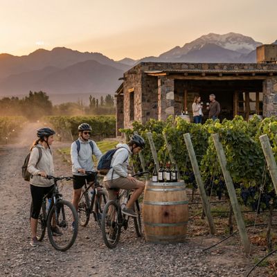 - Middag: Voor de middag kun je je laten verwennen met een uitgebreide bodega-lunch en een blending workshop waar je leert hoe een eigen malbec wordt samengesteld; wie actief wil blijven boekt een rafttocht op de Mendoza-rivier of een 4x4 tocht naar hogere paden, en reizigers die combineren kiezen een fietstocht langs kleine, ambachtelijke bodegas met korte proeverijen tussendoor. Er zijn georganiseerde opties die vervoer, lunch en proeverijen regelen als je het makkelijk wilt, of je maakt het zelf los met een huurauto en pitstops.