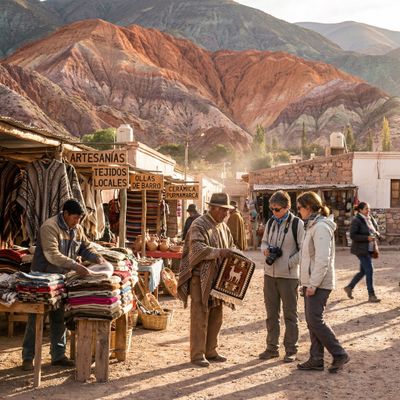 - Ochtend: Vroeg op pad: rijd of pak de bus door de spectaculaire vallei richting het noorden en maak je eerste stop in Purmamarca waar je meteen de beroemde kleurenwand van Cerro de los Siete Colores kunt bewonderen en over de lokale ambachtsmarkt kunt struinen. Liever iets georganiseerder? Boek een ochtendexcursie zodat vervoer, gids en fotostops zijn geregeld en je meer achtergrond krijgt over de geologie en cultuur via een optie zoals Salta: Full-day Quebrada de Humahuaca tour. Als alternatief blijf je in Salta voor een relaxed begin met een bezoek aan het MAAM of de lokale markt en zet je later koers richting de quebrada.