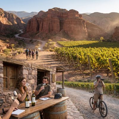 - Middag: Aangekomen in Cafayate kun je meteen de wijnroute induiken: bezoek een paar bodegas voor proeverijen van frisse Torrontés en volle malbecs, of huur een fiets en fiets van finca naar finca voor een actieve, zonnige middag met tussenstops voor tapas en uitzicht; wie cultuur wil pakt het Museo de la Vid of slentert door het centrale plein en lokale ambachtwinkels. Voor wie alles geregeld wil hebben bestaan er begeleide opties zoals een Cafayate wine tasting tour die vervoer, meerdere proeverijen en lunch combineert, terwijl ander reizigers liever zelfstandig kiezen welke bodega's ze binnenlopen en zo hun eigen tempo bepalen.