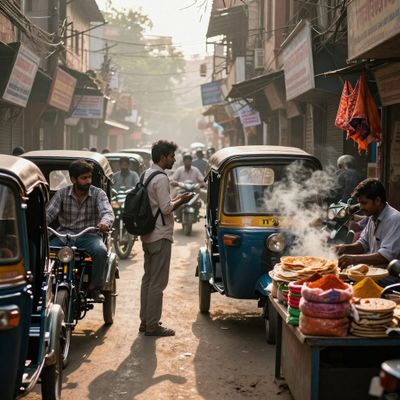 - Ochtend: Na aankomst op de luchthaven van New Delhi is het slim om eerst je hotel te bereiken en je bagage af te gooien; je hebt de keuze om die eerste uren rustig bij te komen met een korte powernap en een wandeling door de buurt van je hotel, of meteen de stad in te duiken en een lichte verkenning te doen richting Connaught Place voor streetfood en koffietentjes. Als je energie hebt, kun je ook kiezen voor een georganiseerde start en je aanmelden bij een Old Delhi Food & Rickshaw Tour om meteen de geuren en kleuren van de stad te proeven. Voor wie cultuur wil proeven is een vroege stop bij Qutub Minar mogelijk, maar houd rekening met reistijd en verkeer.