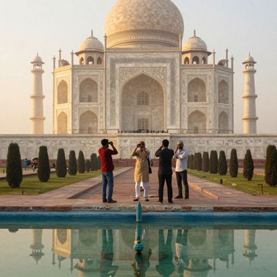 - Ochtend: Vroeg eruit? Pak de Shatabdi of een vroege privé-transfer richting Agra en probeer de zonsopgang bij Taj Mahal te vangen; je kunt kiezen voor een georganiseerde rit inclusief skip-the-line via een Taj Mahal Sunrise Tour from Delhi, of juist low-key met de trein en een lokale gids ter plekke. Blijf liever in de stad? Dan is een fietstour door de rustige straten van New Delhi bij zonsopgang een topoptie, langs Lodi Gardens en stille straatkoffies waar locals hun dag beginnen. Beide routes geven je een andere energie: monumentale stilte bij de Taj of het ontwakende Delhi-leven met verse chai en parathas.
