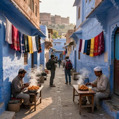 - Avond: Als de lucht goud kleurt kun je kiezen voor een spectaculaire zonsondergang vanaf de muren van Mehrangarh Fort of vanaf een rooftop met uitzicht, gevolgd door een uitgebreide Rajasthani thali; voor meer avond-entertainment boek je een diner met traditionele muziek via Traditional Rajasthani Dinner and Folk Show, of houd het low-key met straatgerechten zoals mirchi vada en lassi terwijl je door de verlichte straten van de blauwe wijk slentert. Het nachtleven in Jodhpur is relaxed: een paar gezellige rooftopbars en kleine cafés waar je andere reizigers ontmoet of gewoon vroeg je hotel induikt om morgen fris te zijn.