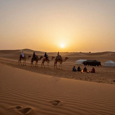 - Avond: De avond in Jaisalmer draait vaak om de woestijn: ga voor een magische zonsondergang bij de Sam Sand Dunes met een klassieke kameelrit en kies of je na de rit terugkeert naar je hotel in de stad of deelneemt aan een georganiseerde ervaring zoals Sam Sand Dunes Camel Safari Sunset Tour inclusief folk-muziek en diner in een camp. Als je minder ver wilt reizen, boek dan een korte jeep-sunset tour en eindig op een rooftop met lokale gerechten en een golden hour view van het fort. Het nachtleven is relaxed; veel hotels hebben sfeervolle dakterrassen om de dag af te sluiten.