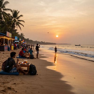 - Avond: Als de zon laag hangt kun je kiezen voor een barefoot sundowner met livemuziek bij een beach shack op Palolem of Agonda, of je mixt markt en muziek en struint de Anjuna/Arpora night market af voor eten, handwerk en DJ-sets. Voor een meer intieme avond boek je een rustige boottocht bij zonsondergang, of sluit je de dag af met een kampvuur en sterren kijken op het strand terwijl lokale muzikanten spelen. Goa biedt alles van feest tot complete relax: kies jouw vibe en geniet slim.