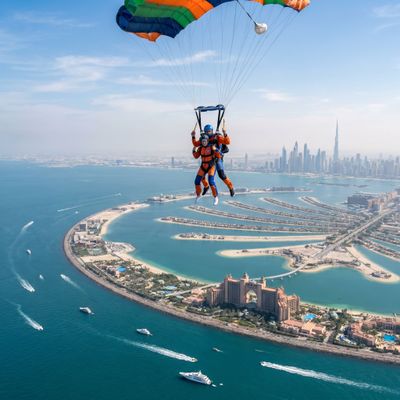 - Ochtend: Begin de dag met een powerontbijt in je hotel en kies daarna voor iets spectaculairs: durf een tandemskydive boven Palm Jumeirah te doen voor een adembenemend uitzicht op Dubai en de zee, of ga voor iets minder extreem en verken de iconische palmeilanden te voet en per tram richting Atlantis, The Palm waar je ook het waterpark kunt inspringen met vooraf geboekte Aquaventure Waterpark at Atlantis The Palm tickets. Als water en hoogte niks voor je zijn, huur een jet-ski of ga parasailen vanaf Jumeirah voor een actieve ochtend op de golven, of blijf chill bij het hotelzwembad om te herstellen van de reis.