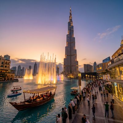 - Avond: Sluit de reis stijlvol af met een sunset-aperitief en uitzicht op de verlichte Burj Khalifa en de fonteinshow, of kies voor een sfeervol diner op het water met een traditionele dhow via Dhow Dinner Cruise Dubai om onder de stadslichten te eten. Als je nog energie hebt kun je het nachtleven in Marina induiken; wie het kalm wil houden maakt een laatste wandeling over JBR en pakt een late-night snack voordat je teruggaat naar het hotel om je koffers te pakken.