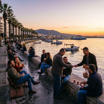 - Avond: Als de zon zakt kun je terug naar het Kordon voor een zonsondergang met raki en meze of doorlopen naar het levendige Alsancak voor tapas-achtige plekken en cocktailbars. Voor wie nachtleven zoekt zijn er rooftopbars en live muziek in buurtcafés waar je makkelijk andere reizigers ontmoet, of je sluit rustig af met een avondwandeling langs het verlichte Konak Meydanı en Saat Kulesi voordat je terugkeert naar je hotel.