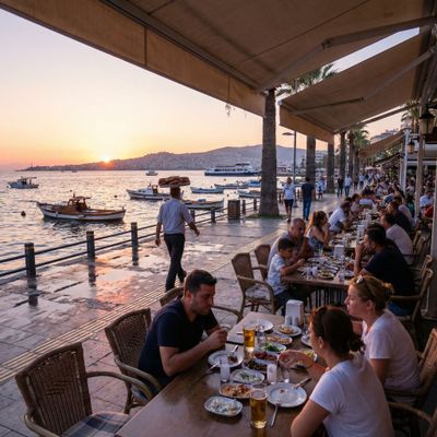 - Avond: Sluit je reis af met een zonsondergangwandeling langs het water en een laatste diner met mezeler op een terras bij Konak Meydanı, of kies voor het bruisende nachtleven in Alsancak met rooftopbars en livemuziek. Als je liever relaxed eindigt, zoek een rustig dakterras voor uitzicht op de verlichte stad en pak daarna je spullen in voor vertrek; wie een late vlucht heeft kan nog een korte avondwandeling maken langs de boulevard.