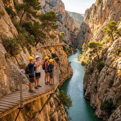 Een van de meest spectaculaire wandelroutes van Spanje: een smal pad tegen de klif met adembenemende vergezichten. Vaak via organiserende aanbieders te boeken zoals Caminito del Rey guided hike, handig als je zekerheid wilt en vervoer geregeld wilt hebben. - Ronda en de brug Puente Nuevo