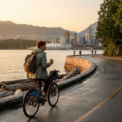 - Ochtend: Wek jezelf rustig en haal het laatste uit je bagagevrije uren: loop een laatste ronde langs de seawall bij Stanley Park voor ochtendlicht en bevroren adem of kies voor een stevige ochtendrun naar de Prospect Point-uitkijk om skylinefoto's te maken. Als je liever stadsleven pakt, strijk neer voor een late brunch in Gastown of op Robson Street en snuffel tussen lokale shops voor souvenirs. Voor een mix van chill en actief kun je een fiets huren en nog een keer het water rondrijden, of bezoek het Vancouver Aquarium als je zin hebt in indoor-ontdekking voordat je uitcheckt en koers zet naar je volgende stop.