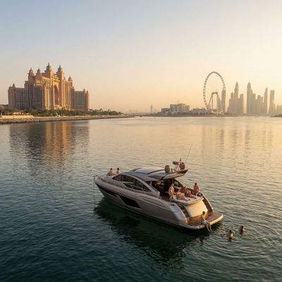 - Middag: De middag nodigt uit om de skyline vanaf het water te zien: stap aan boord van een privé- of gedeelde yacht voor een cruise rond Palm en langs de Dubai Marina, met zwemstops en uitzicht op iconen; je kunt dit als georganiseerde tour boeken zoals een Dubai Marina Yacht Cruise, of juist naar Bluewaters Island wandelen om de reuzenrad-ervaring te pakken bij Ain Dubai. Wie culturele foodvibes wil, duikt in Souk Madinat Jumeirah voor een lunch met uitzicht op de koraal-lagunes en Burj Al Arab in de verte.