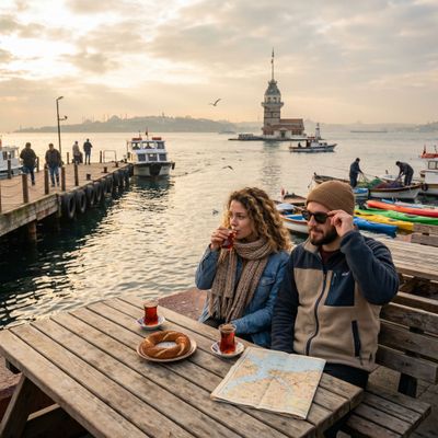 - Ochtend: Begin met een ontbijt langs de Aziatische kade van Istanbul, waar je kunt slenteren over de promenade van Üsküdar en stoppen in een van de traditionele çay-tuinen in Çengelköy waterfront voor brood, börek en zeezicht; wie actie wil neemt de korte boot naar Maiden's Tower en maakt een korte rondleiding of foto-stop, of je boekt vooraf een Maiden's Tower boat tour om verzekerd te zijn van een plek bij het torentje. Liever rustig opstarten? Ga dan naar Moda voor een hippe brunch en koffietjes in cafés terwijl je uitkijkt over de Marmara, ideaal om plannen voor de middag te maken.