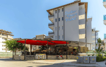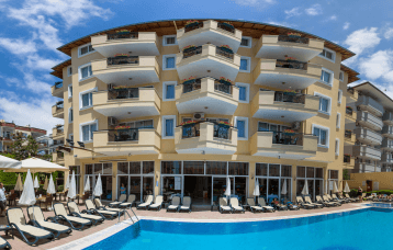 Fly & Go Sunflower in Side ligt op een ideale locatie: slechts één straat scheidt het aparthotel van een fijn zandstrand en het gezellige, historische centrum van Side is eenvoudig te voet bereikbaar. Wie op zoek is naar korte wandelingen langs de boulevard, een stukje geschiedenis bij het amfitheater of terrasjes, winkeltjes en avondvertier binnen handbereik, vindt hier veel gemak. Het complex heeft een kleinschalige en gemoedelijke sfeer, een buitenzwembad met apart kinderbad en een zonneterras met ligbedden, parasols en matrasjes — ook op het strand aanwezig — waardoor heerlijk ontspannen aan zee goed mogelijk is.