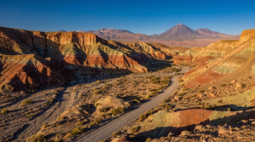 Tussen de Andes en de Stille Oceaan ontvouwt zich de Atacama-woestijn, de droogste niet-polaire woestijn ter wereld. Je rijdt door een decor dat aan sciencefiction doet denken: versteende duinen, krakende zoutkorsten, kegelvormige vulkanen en vlaktes die schitteren in koper, oker en krijtwit. In Valle de la Luna en Valle de la Muerte lijken schaduwen dieper en lijnen strakker, terwijl de silhouet van de Licancabur als een baken aan de horizon staat. De lucht is ijl en stoffrij, waardoor elke contour messcherp afsteekt tegen de hemel.