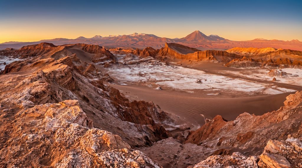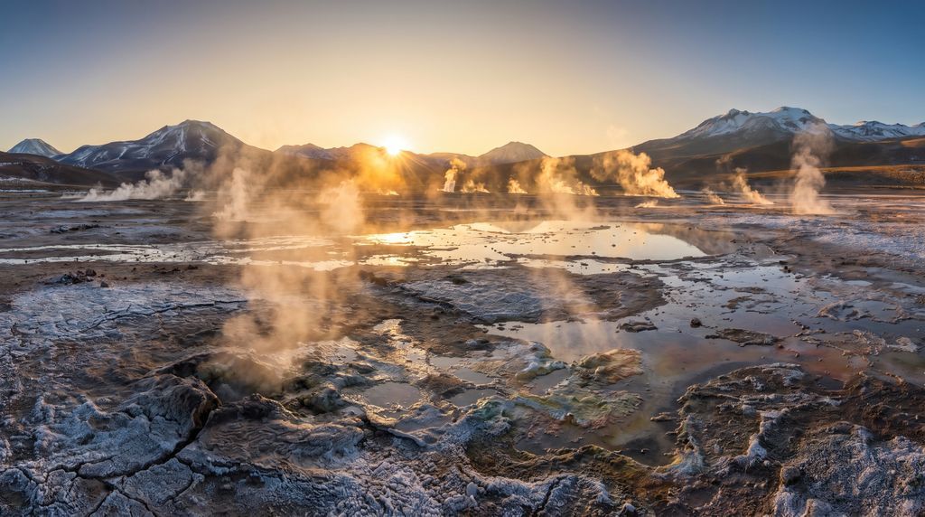 Waar de Andes de Stille Oceaan ontmoet, strekt de Atacama-woestijn zich uit: een wereld van zoutvlaktes, vulkaankegels en roestrode valleien onder een oneindige hemel. Hier kleuren zonsondergangen surrealistisch, dampen geisers bij dageraad en spiegelen lagunes flamingo’s. De lucht is glashelder, de stilte allesomvattend. San Pedro de Atacama vormt de sfeervolle poort naar dit hoge, droge landschap, waar elke zonsopgang en sterrennacht voelt als een unieke ontdekking.