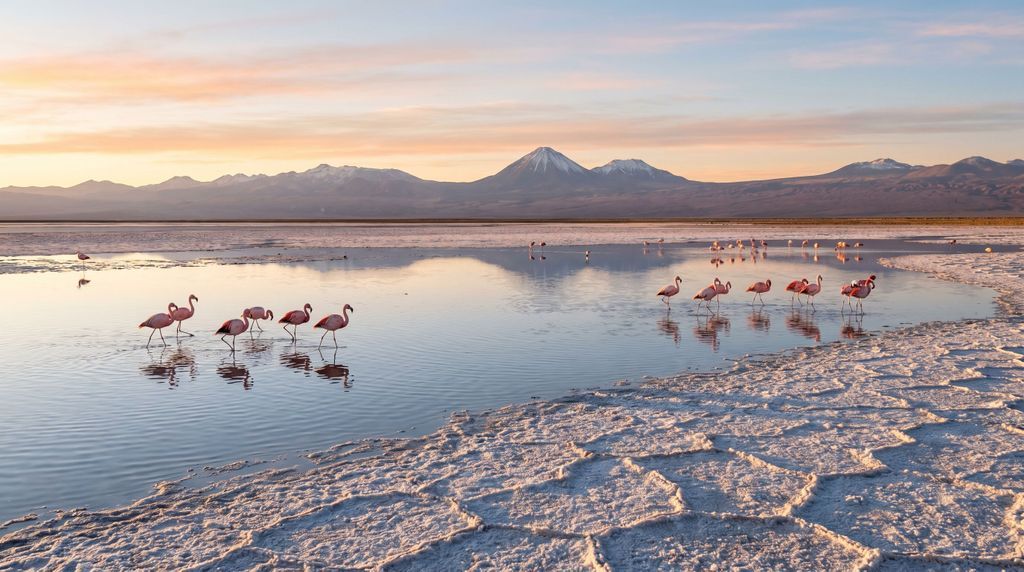 De Atacama-woestijn laat je in één oogopslag zien hoe divers leegte kan zijn. Zoutvlaktes schitteren als gebarsten spiegels, terwijl kegelvulkanen met eeuwige sneeuw de horizon bewaken. Daartussen liggen groene linten van hooglandmoerassen – de bofedales – waar smeltwater traag door kussenvormige planten sijpelt. Het samenspel van droogte en hoogte schept een mozaïek van microhabitats, waarin elke kilometer andere kleuren, geuren en geluiden oproept.