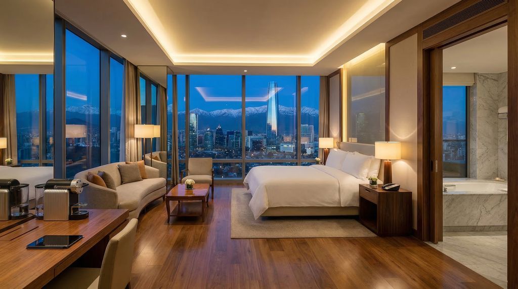 Zoek je luxe, dan zijn Las Condes en Vitacura de logische keuze. Hier zitten high-end hotels met ruime kamers, kingsize bedden en marmeren badkamers, aangevuld met spa’s, fitnessruimtes, rooftoppools en conciërges die dagtrips, restaurantreserveringen en wijnproeverijen regelen. In Vitacura wandel je zo naar Parque Bicentenario en designstraten als Alonso de Córdova; in Las Condes profiteer je van snelle verbindingen, winkelcentra en zakenfaciliteiten. Tarieven behoren tot de hoogste van de stad, maar in weekends en vakanties verschijnen geregeld pakketten met ontbijt, late check-out of toegang tot lounges. Families waarderen suites met aparte woonruimtes en rustige, residentiële straten.