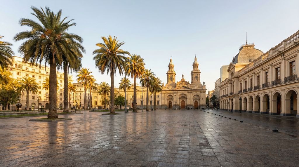 Lang vóór de Spaanse komst bewoonden inheemse groepen als de Picunche en Mapuche de vallei waar Santiago nu ligt, met handelsroutes die de Andes en de kust verbonden. In 1541 stichtte Pedro de Valdivia de stad volgens een schaakbordpatroon rond de Plaza de Armas. Koloniale kerken en kloosters verschenen, later aangevuld met neoklassieke accenten zoals het door Joaquín Toesca ontworpen Palacio de La Moneda. Na de onafhankelijkheid in 1818 groeide Santiago uit tot een republikeinse hoofdstad: brede lanen, parken en nieuwe bruggen over de Mapocho versterkten de stad, terwijl Europese invloeden het aangezicht verfijnden in gevels en pleinen.