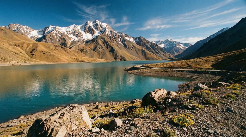 De bergen beginnen al aan de stadsrand: volg de Maipo-rivier zuidwaarts en je rolt de Cajón del Maipo binnen, een kloof met steile wanden, condorwaaien en dorpjes waar je provisie inslaat. De rit naar Embalse El Yeso beloont met melkblauw water en spectaculaire bergflanken; stop bij miradores voor foto’s en korte wandelingen. Wie ontspanning zoekt, rijdt verder naar de thermale baden van Baños Colina of Baños Morales, waar warme terrassen stoom afblazen tegen een alpien decor. Vertrek vroeg, check weers- en wegcondities (’s winters kan sneeuw de pas sluiten) en neem laagjes, zonnebescherming en voldoende water mee; na regen of sneeuw kan een auto met hogere bodemvrijheid zinvol zijn.