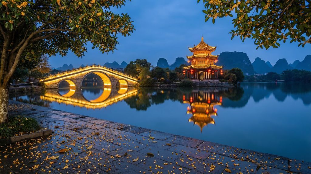In juni tijdens het Drakenbootfestival kun je lokaal evenementen of drakenbootraces op rivieren en meren treffen (afhankelijk van het jaar en het schema). Dit trekt toeschouwers en kan plaatselijk voor verkeersomleidingen zorgen. Het weer is warm en vochtig; neem water en zonbescherming mee en koop tickets voor riviertochten vooraf. Het Midherfstfestival (sept/okt) brengt lantaarnversieringen, mooncakes en familie-uitjes; in Guilin is dit extra sfeervol door de osmanthus (guihua) die juist in de herfst uitbundig geurt in parken en langs lanen. Verwacht een lichte tot middelgrote druktepiek in weekenden rondom de feestdag, met levendige avonden in de Two Rivers & Four Lakes‑zone.